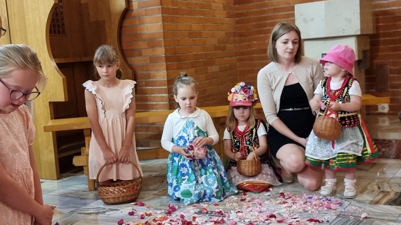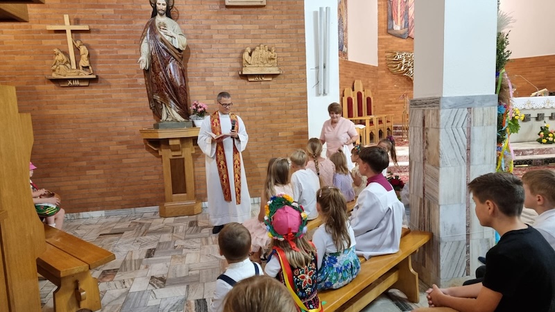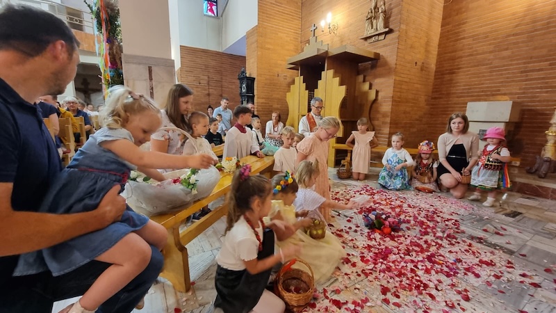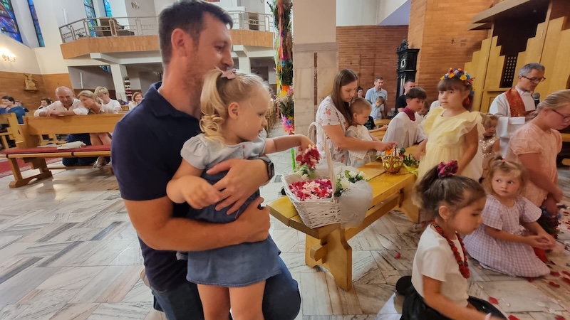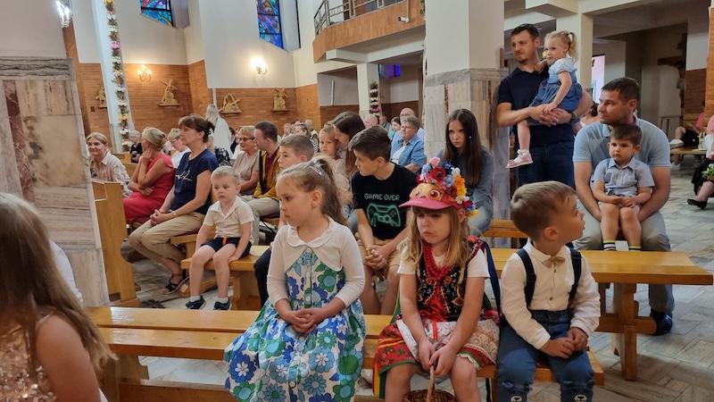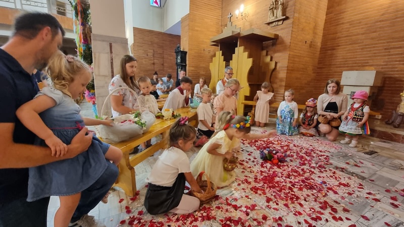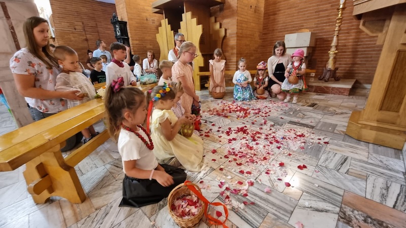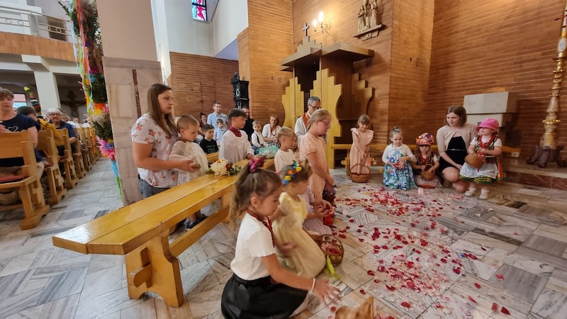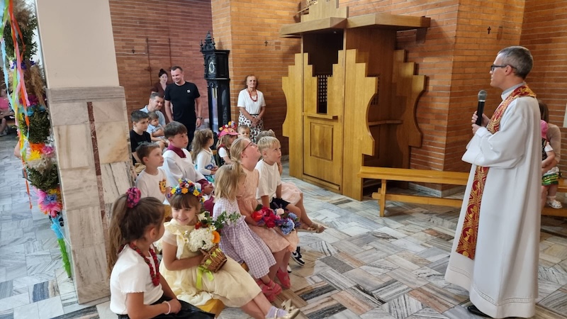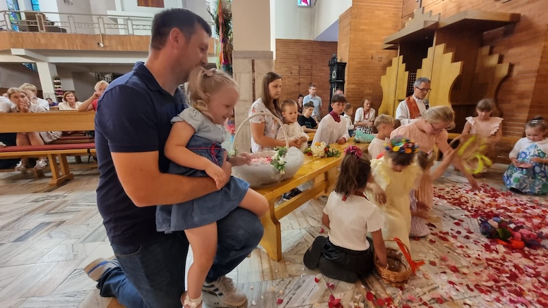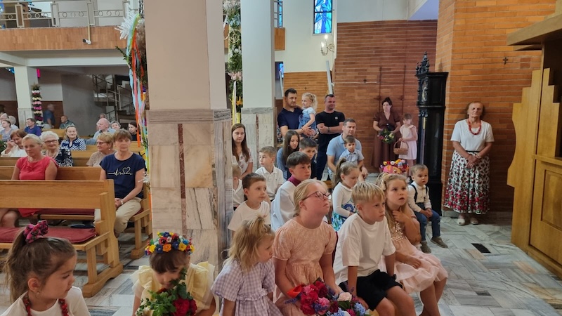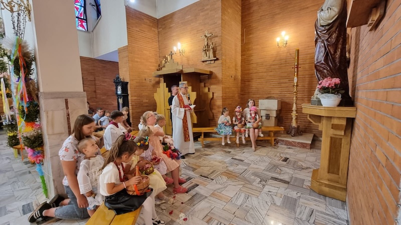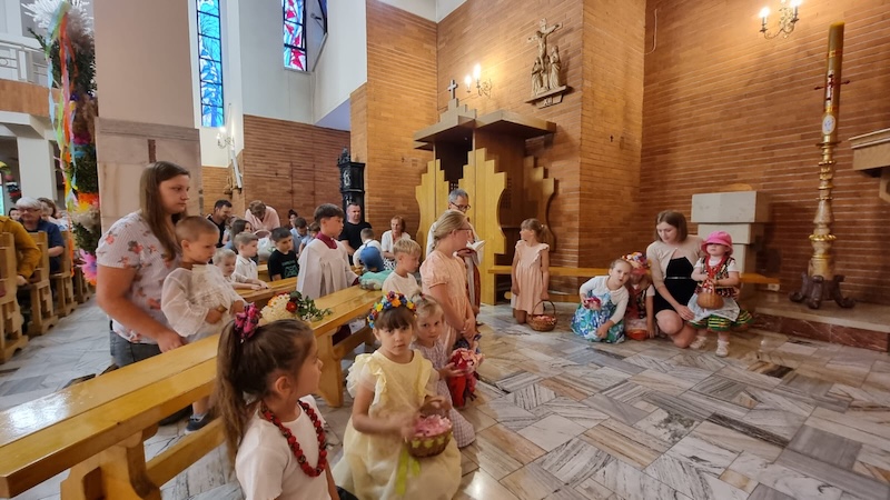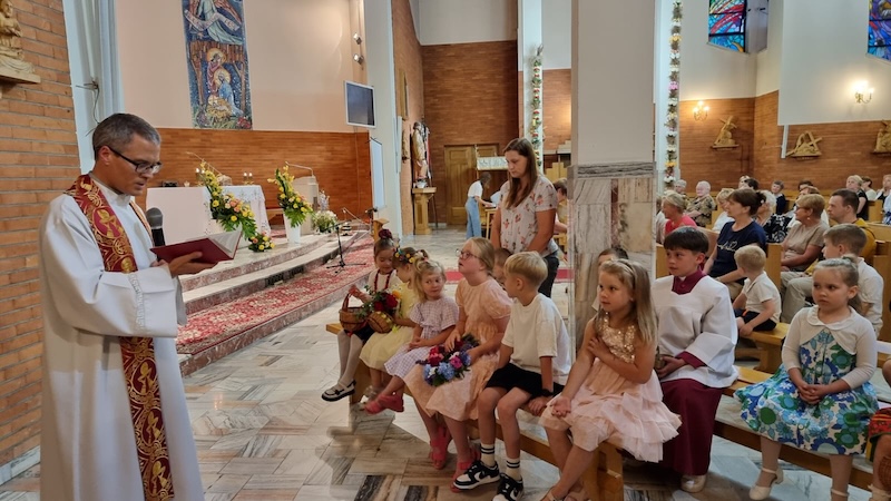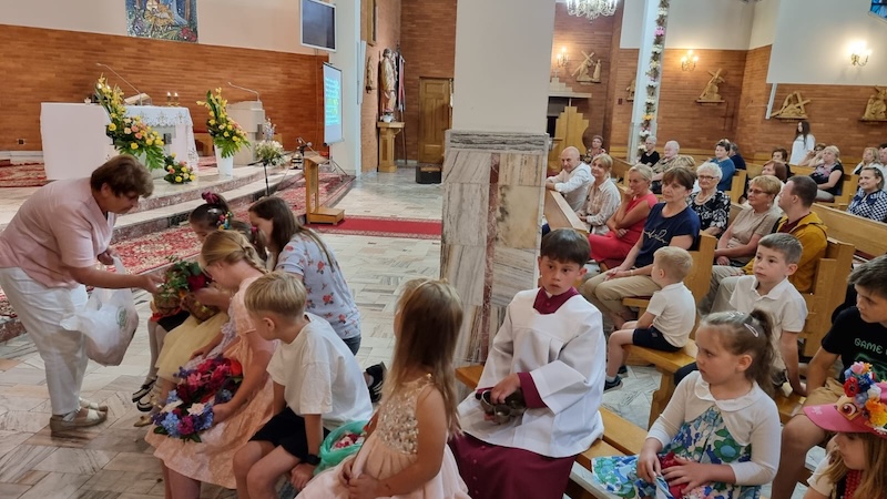 W piątek, 27 czerwca 2025 r., w Uroczystość Najświętszego Serca Pana Jezusa w naszej świątyni miało miejsce Błogosławieństwo dzieci. Po Eucharystii kapłan udzielił dzieciom indywidualnego błogosławieństwa, prosząc Boga o zdrowie, opiekę i łaski potrzebne do wzrastania w wierze i miłości. Tradycyjnie poświęcone zostały również wianki z ziół i kwiatów. Był to wyjątkowy moment zawierzenia najmłodszych Sercu Jezusowemu – pełnemu miłości, czułości i miłosierdzia.