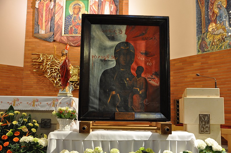 W 1984 roku artysta malarz Artur Chaciej z Podlasia namalował obraz Jasnogórskiej Maryi Panny na tle, który stanowi biało czerwona flaga upamiętniająca zrywy robotnicze: Poznań 1956; Gdańsk 1970; Radom 1976; Gdańsk 1980 oraz stan wojenny – 13 grudnia 1981. Obraz wykonano w trzech kopiach o różnej wielkości. Najmniejszy z nich otrzymał Bł. Ks. Jerzy Popiełuszko – kapelan Solidarności. Obraz peregrynuje po Polsce już od 8 lat.