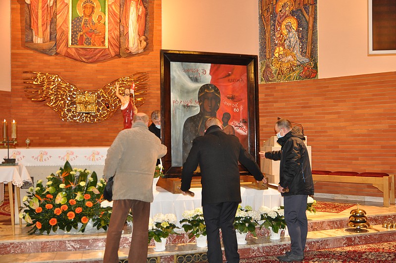 W dniu dzisiejszym, 14 kwietnia 2021 roku do naszej parafii dotarł obraz Matki Bożej Patronki Solidarności Robotników wraz z relikwiami Bł. Ks. Jerzego Popiełuszki oraz repliką Krzyża z Nowej Huty. Podczas wieczornej Mszy Św. o godz. 18.00 modliliśmy się za wszystkie rodziny, zwłaszcza za pracujących z naszej parafii oraz za wszystkich tych, którzy pracę utracili bądź jej poszukują. Celebrze przewodniczył Ks. Proboszcz Marek Szczerba.