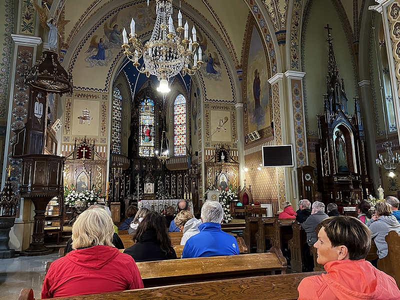 W dniu 10 września nasi parafianie pielgrzymowali autokarem do trzech sanktuariów. Pierwszym miejscem gdzie dotarliśmy koło godz. 08.00 był Dębowiec, a dokładniej Sanktuarium Matki Bożej Saletyńskiej Bazylika Mniejsza Najświętszej Maryi Panny z La Salette w Dębowcu. https://sanktuarium.saletyni.pl/