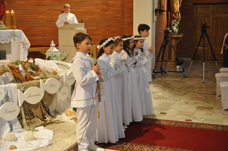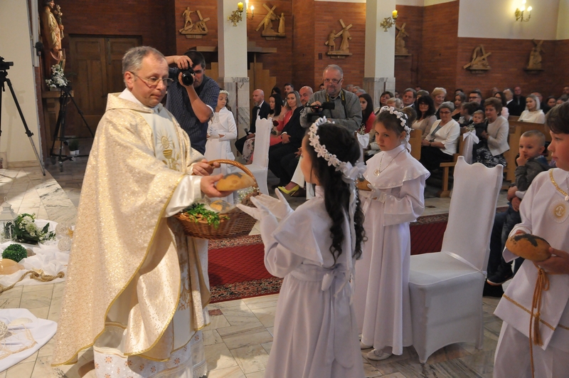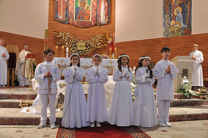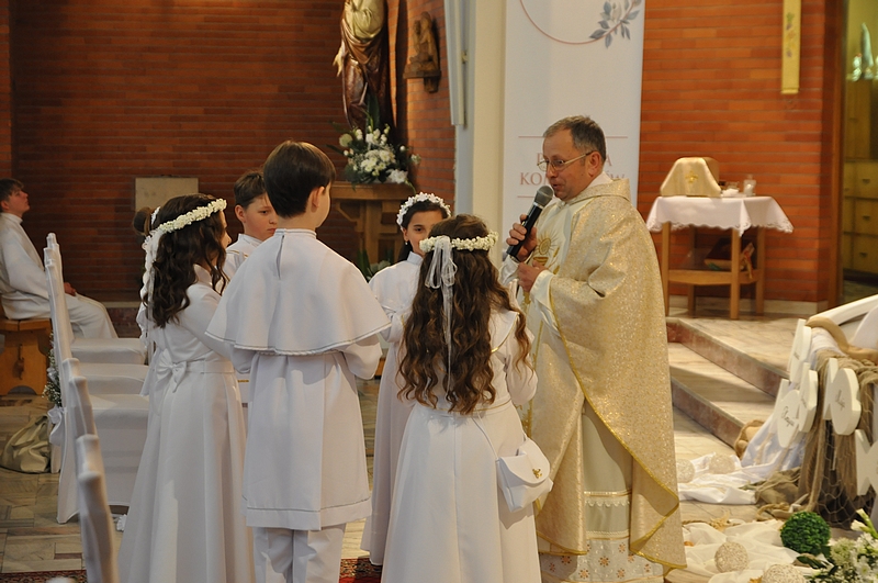 W dniu 29.05.2022 w naszej parafii do Pierwszej Komunii Świętej przystąpiły 4 dziewczynki i dwóch chłopców. Niech to wielkie wydarzenie wyryje niezatarte piętno w ich życiu, aby zawsze kochały Jezusa, jak najczęściej gościły Go w swoim sercu i były wierne Jego nauce.