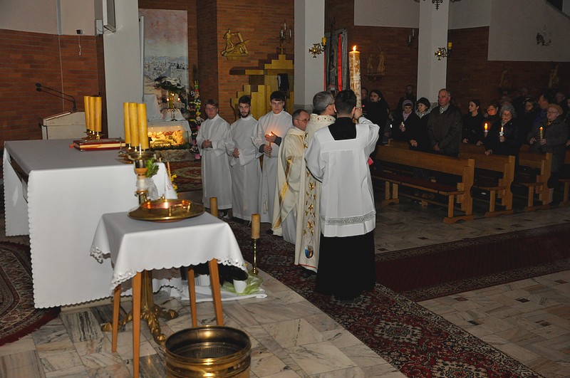 Przez całą Wielką Sobotę nie sprawuje się Mszy świętej - tego dnia sprawowana jest jedynie Liturgia Godzin. Dopiero późnym wieczorem, po zapadnięciu zmroku, rozpoczyna się świętowanie Wielkiej Nocy poprzez najuroczystszą i najpiękniejszą liturgię całego roku - Wigilię Paschalną.