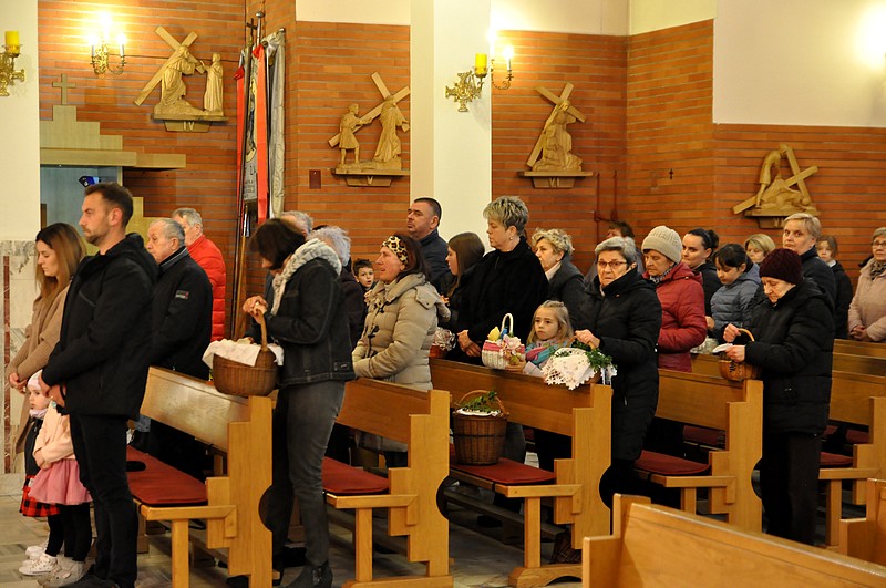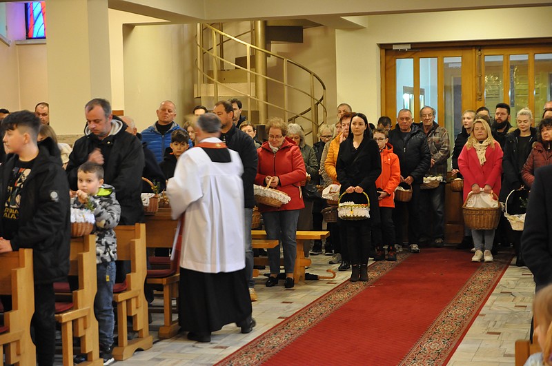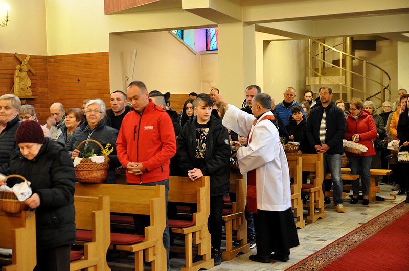 W tym dniu do godzin popołudniowych kapłani święcą pokarmy. W Polsce lud przynosi je w przyozdobionych koszyczkach. W innych krajach, np. we Włoszech, kapłani chodzą po domach, otrzymując w zamian ofiary. W Polsce również kiedyś panował ten zwyczaj. Zniesiono go z powodu nadużyć. Tak o nich np. pisze biskup płocki Załuski w roku 1733: "Upowszechnił się zwyczaj święcenia pokarmów w Wielką Sobotę po domach osób świeckich, który, aczkolwiek sam w sobie pobożny i chwalebny, dla nadużyć jednak cierpianym być nie może. Proboszczowie w dniu po złożeniu Chrystusa w grobie zamiast poświęcić ogień i wodę, słuchać spowiedzi itp., wszystko to opuściwszy, biegają po wsiach i domach, i często ledwo zdążą na jutrznię, a niekiedy niezdolni są nawet do odprawienia Mszy świętej ze zgorszeniem ludu i zniewagą stanu duchownego. Dlatego też niech wyłożą wiernym, iż nie jest koniecznością wszystkie pokarmy poświęcać, lecz dosyć niektóre z nich, choćby tylko sam chleb, a ten z łatwością może być przyniesiony do drzwi kościelnych i tam błogosławiony". O. Newerani pisał w roku 1739 w "Ozdobie Kościoła Katolickiego": "Święcą baranka, przypominającego prawdziwego Baranka-Chrystusa i Jego triumf, dlatego też zwyczajnie chorągiewki na pieczonym baranku stawiają. Święcą mięsiwa, którego się Żydom pożywać nie godziło, na dowód, żeśmy przez Chrystusa Pana z jarzma Starego Zakonu uwolnieni... Święcą chrzan na znak tego, że gorzkość męki Jezusowej tegoż dnia w słodycz się nam zamienia, i dlatego też przy tym masło święcą, które znaczy tę słodycz. Święcą na ostatek i jaja na dowód tego, że jako kokosz dwojako niejako kurczęta rodzi, raz niosąc owoc, drugi raz go wysiadując, tak przez Chrystusa dwa razy jesteśmy odrodzeni".