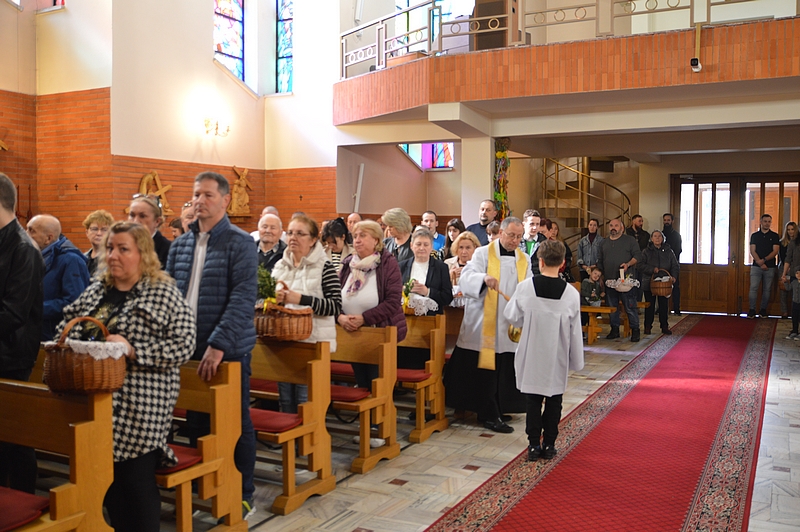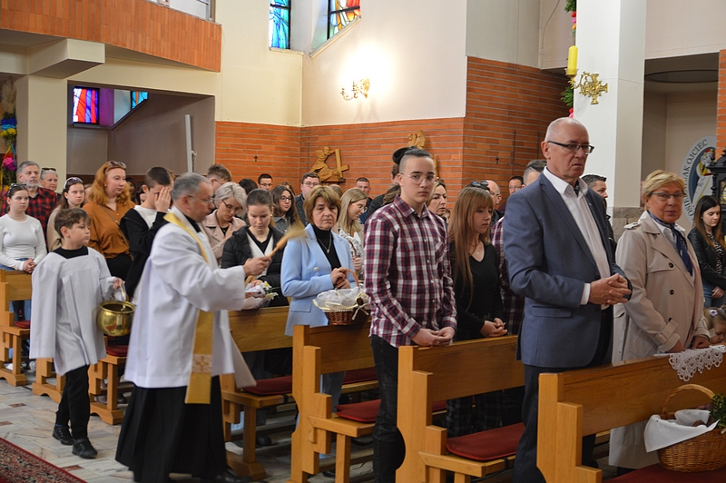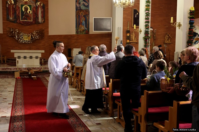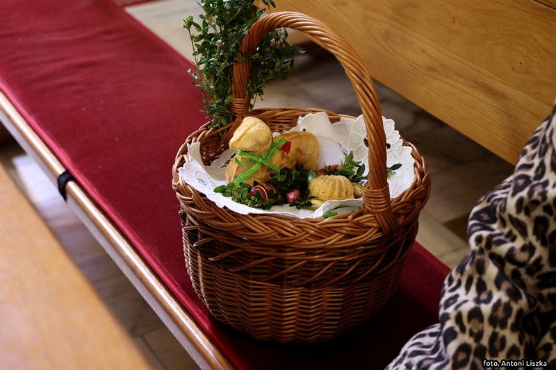 W tym dniu do godzin popołudniowych kapłani święcą pokarmy. W Polsce lud przynosi je w przyozdobionych koszyczkach. W innych krajach, np. we Włoszech, kapłani chodzą po domach, otrzymując w zamian ofiary. W Polsce również kiedyś panował ten zwyczaj. Zniesiono go z powodu nadużyć. Tak o nich np. pisze biskup płocki Załuski w roku 1733: "Upowszechnił się zwyczaj święcenia pokarmów w Wielką Sobotę po domach osób świeckich, który, aczkolwiek sam w sobie pobożny i chwalebny, dla nadużyć jednak cierpianym być nie może. Proboszczowie w dniu po złożeniu Chrystusa w grobie zamiast poświęcić ogień i wodę, słuchać spowiedzi itp., wszystko to opuściwszy, biegają po wsiach i domach, i często ledwo zdążą na jutrznię, a niekiedy niezdolni są nawet do odprawienia Mszy świętej ze zgorszeniem ludu i zniewagą stanu duchownego. Dlatego też niech wyłożą wiernym, iż nie jest koniecznością wszystkie pokarmy poświęcać, lecz dosyć niektóre z nich, choćby tylko sam chleb, a ten z łatwością może być przyniesiony do drzwi kościelnych i tam błogosławiony". O. Newerani pisał w roku 1739 w "Ozdobie Kościoła Katolickiego": "Święcą baranka, przypominającego prawdziwego Baranka-Chrystusa i Jego triumf, dlatego też zwyczajnie chorągiewki na pieczonym baranku stawiają. Święcą mięsiwa, którego się Żydom pożywać nie godziło, na dowód, żeśmy przez Chrystusa Pana z jarzma Starego Zakonu uwolnieni... Święcą chrzan na znak tego, że gorzkość męki Jezusowej tegoż dnia w słodycz się nam zamienia, i dlatego też przy tym masło święcą, które znaczy tę słodycz. Święcą na ostatek i jaja na dowód tego, że jako kokosz dwojako niejako kurczęta rodzi, raz niosąc owoc, drugi raz go wysiadując, tak przez Chrystusa dwa razy jesteśmy odrodzeni".
