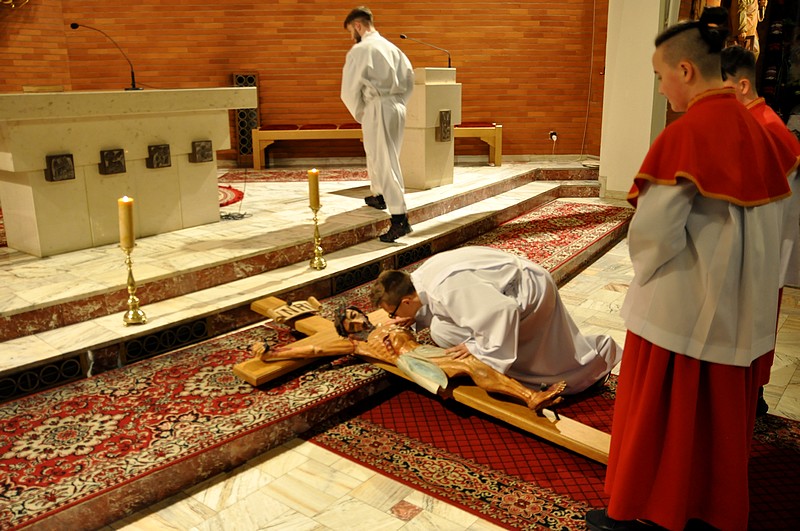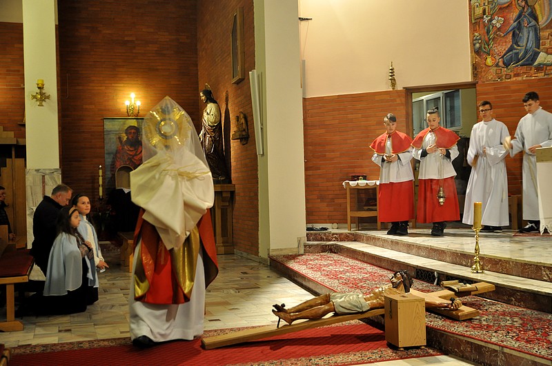 Wielki Piątek jest dniem smutku i żałoby. Przyszedł na ziemię Syn Boży, "leczył wszystkie choroby i słabości" synów ludzkich; tłumy zdumiewały się, widząc, że "niemi mówią, ułomni są zdrowi, chromi chodzą, niewidomi widzą"; w Niedzielę Palmową rzesze na Jego widok wołały pełne entuzjazmu "hosanna", aby zaledwie w kilka dni potem ochrypłymi głosami wołać: "Na krzyż z Nim!", "Krew Jego na nas i na dzieci nasze".