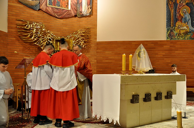 Po odbytej naradzie Sanhedrynu jego członkowie rozeszli się. Pana Jezusa oddano na pastwę sług świątyni i straży. Dla przypodobania się swoim panom, na ich oczach znęcali się nad Chrystusem, bijąc Go i policzkując, plując na Niego na znak pogardy. Potem odprowadzono Pana Jezusa do więzienia - piwnicy, gdzie w dalszym ciągu znęcano się nad Nim.